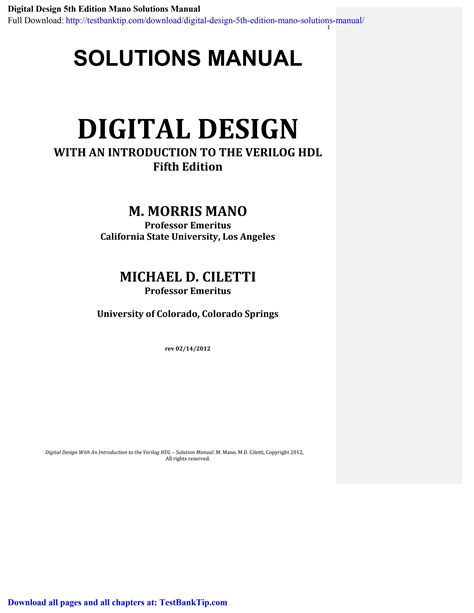 BBP - Download Solutions Manual Digital Design Fifth Edition Kobo Google eBookstore